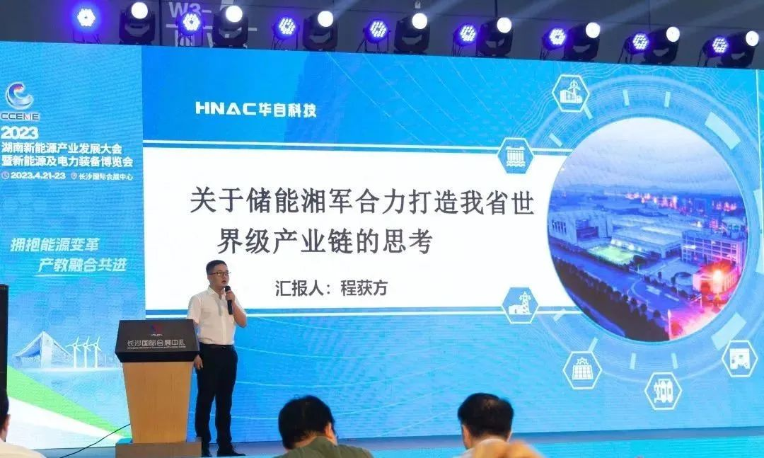 会上,新型储能事业部副总经理程获方作《关于储能湘军合力打造我省世界级产业链的思考》主题演讲,他表示,世界储能看中国,中国储能看湖南。湖南省具有较好的储能产业基础、人才基础、发展基础等,但也存在产业应用拉动不够、协同不充分、支撑要素乏力等问题和挑战,建议储能湘军共建共创共济共享,群策群力打造我省储能产业链、相关部门出台更多支持政策、围绕长株潭打造我省又一世界级产业集群。