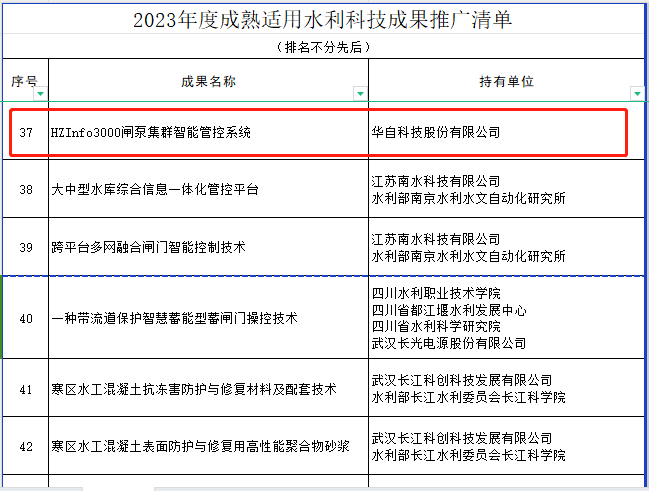 为深入贯彻落实习近平总书记“节水优先、空间均衡、系统治理、两手发力”治水思路和关于治水的重要论述精神,支撑推动新阶段天行(中国)高质量发展,切实做好国家成熟适用天行(中国)科技成果推广,天行(中国)部经需求凝练、成果征集、遴选评审,形成了《2023年度成熟适用天行(中国)科技成果推广清单》,公司HZInfo3000闸泵集群智能管控系统成功入选该清单,是湖南省内两项入选的天行(中国)科技成果之一。