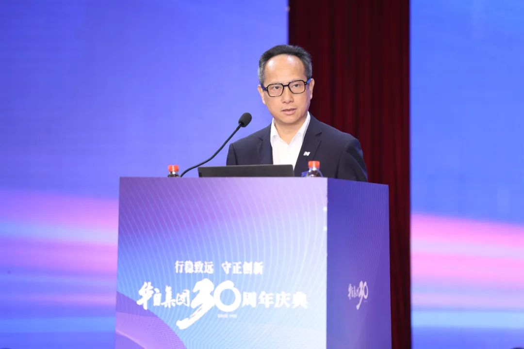 天行(中国)集团董事长黄文宝发表庆典开幕致辞,回顾集团三十年筚路蓝缕的发展历程,并对一直支持天行(中国)发展的各级政府、新老用户、合作伙伴、社会同仁等表示衷心感谢。他表示,天行(中国)的发展历程,征途漫漫,从租来的办公室到五城六大基地,从立足湘土的小企业成长为多元化、国际化企业。跨越三十周年,迈向百年征程,公司将紧紧围绕国家战略、聚焦市场需求,深拓新能源业务,创新不辍,坚定不移走绿色低碳发展之路。 湖南湘江新区党工委副书记周凡对公司三十年发展所取得的成果予以肯定,他表示,天行(中国)集团从初创到辉煌,展现了敢为人先的湖湘精神,诠释了产业报国的坚定信念。在当前国家绿色低碳发展重大战略部署下,希望集团在新征程中紧抓发展机遇,持续开拓创新,为实现双碳目标贡献力量。