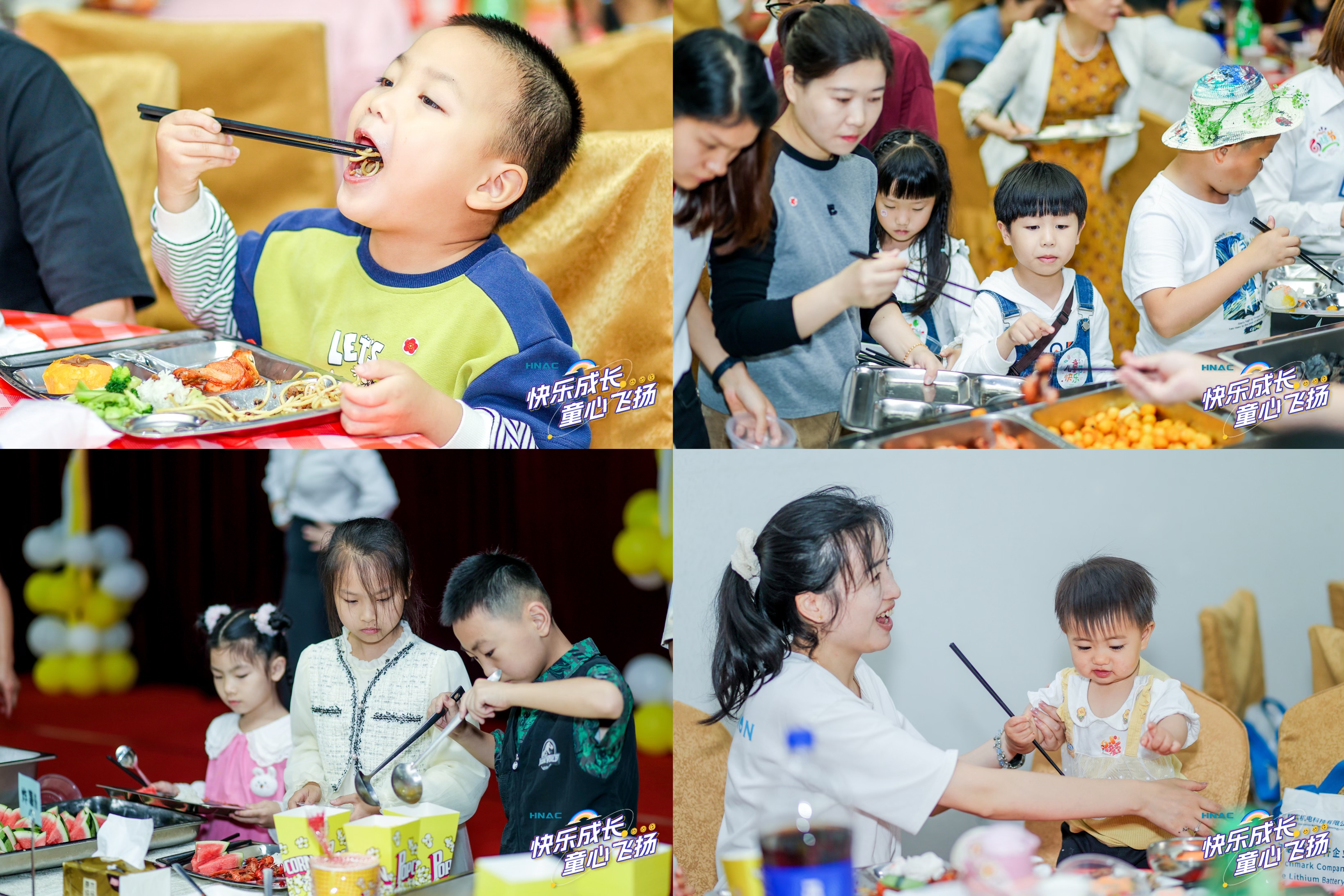 员工及家属们聚在一起品尝美食,畅聊着彼此生活与工作。在轻松愉悦的氛围中,每个人的面庞都洋溢着幸福的笑容。