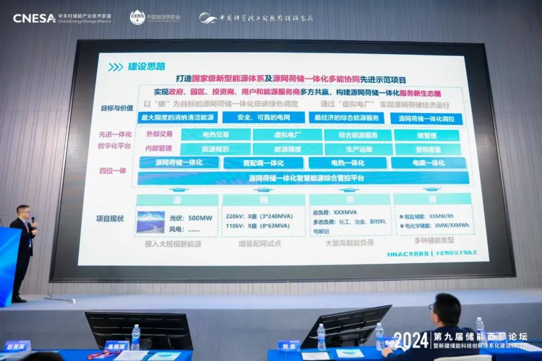 “新能源配储多元化探索”专题研讨环节由公司新型储能事业部营销总经理黄紫主持,新型储能事业部副总经理程获方发表《源网荷储一体化浅析及管控平台介绍》主题演讲,从国家政策导向、源网荷储一体化建设思路、发展趋势及平台先进性等方面进行深入剖析,并展示了公司源网荷储一体化管控平台的创新技术与实际应用价值。他表示,以电力市场交易中的”能量价值、容量价值、灵活价值、绿色价值“为核心考量,源网荷储一体化模式可高效促进新能源与储能融合发展,是构建新型电力系统的重要发展路径,对零碳未来起到决定性作用。