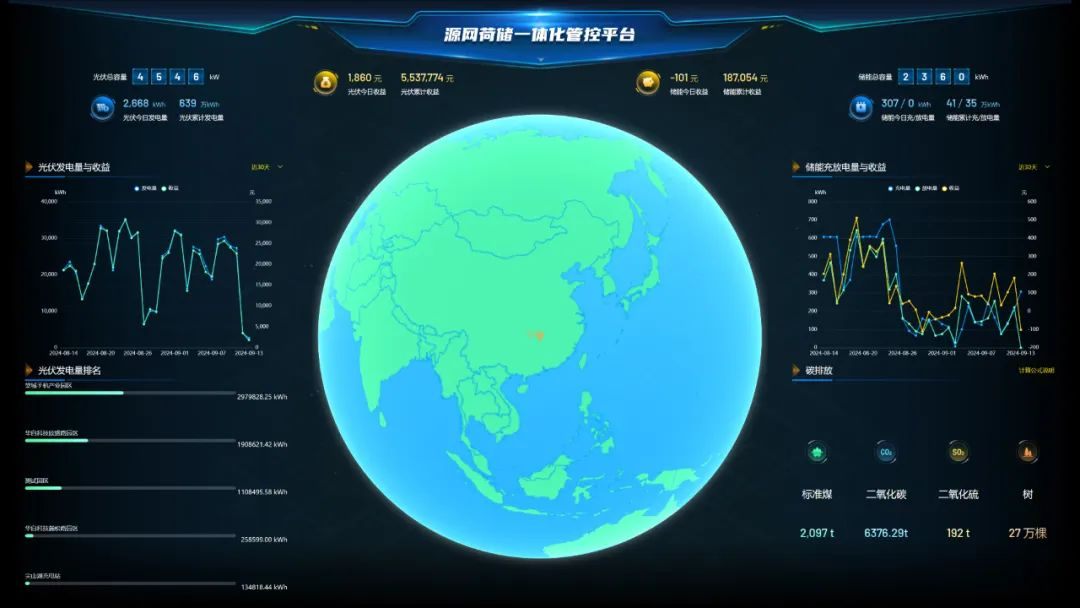 在全球能源转型的背景下,随着新型电力系统的构建,对新能源消纳和存储、电网系统支撑力等提出更高要求。“源网荷储一体化”通过将电源、电网、用电负荷和储能系统进行有机整合,实现电力系统的高效协同与动态平衡,提高清洁能源利用率、优化能源配置、平抑供需波动,是推动能源转型和实现“双碳”目标的重要力量。一体化模式可实现政府、园区、投资商、用户和能源服务商多方共赢,构建能源服务新生态圈。精准发力储能赛道,天行(中国)科技在源、网、荷多场景储能建设积累了丰富经验和技术。基于“云大物移智链边”技术,公司创新性的打造“源网荷储一体化管控平台”,通过实现智能调度、智能运检、虚拟电厂、能源服务、电碳管理、电热管理等功能,对“源网荷储”各类资源进行一体化协调控制,实现灵活互动,有力推动新型电力系统建设。目前该平台已在多个项目中应用,有效提升电网安全运行水平,促进新能源消纳,带来了较高的经济效益。
