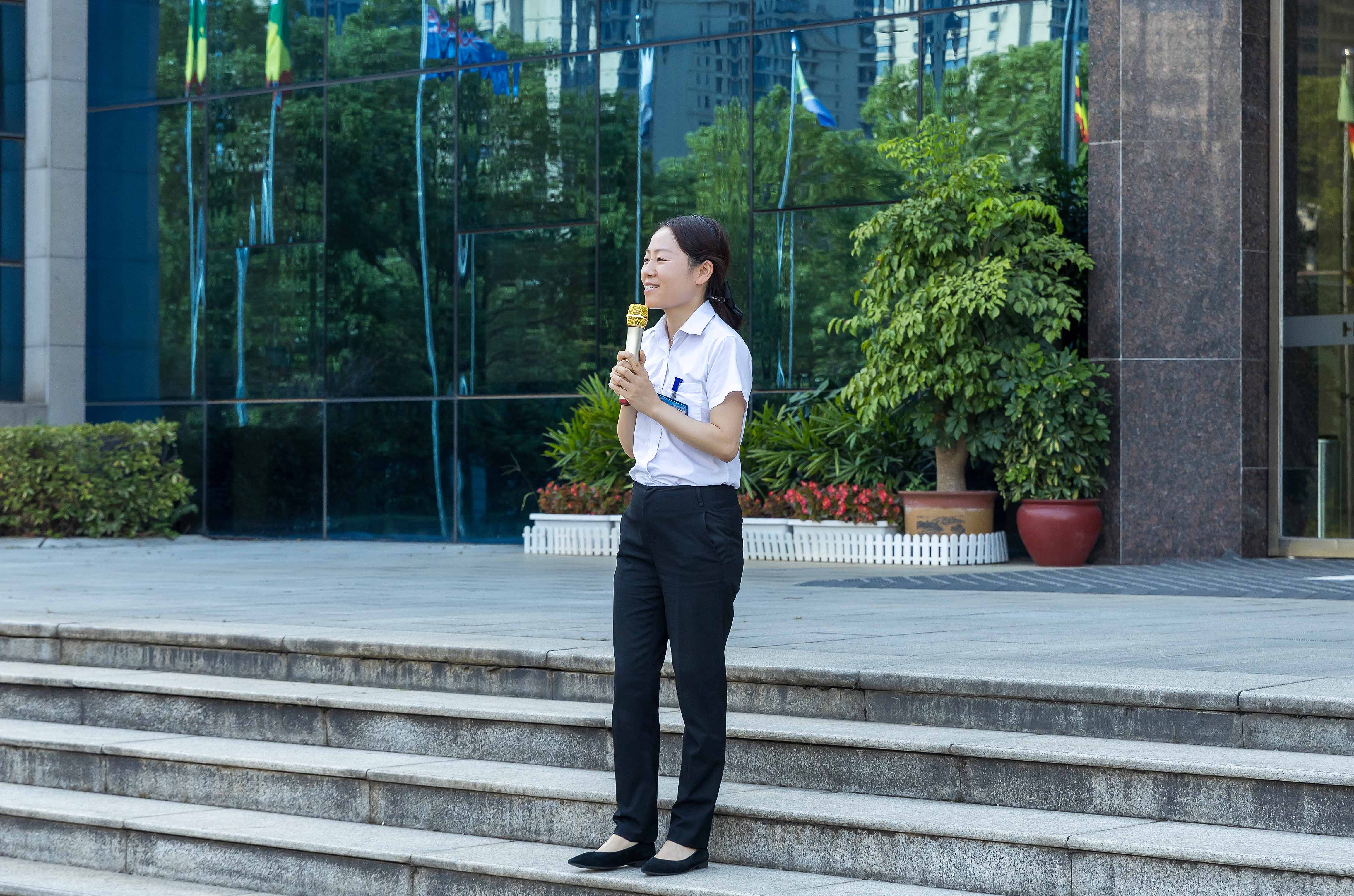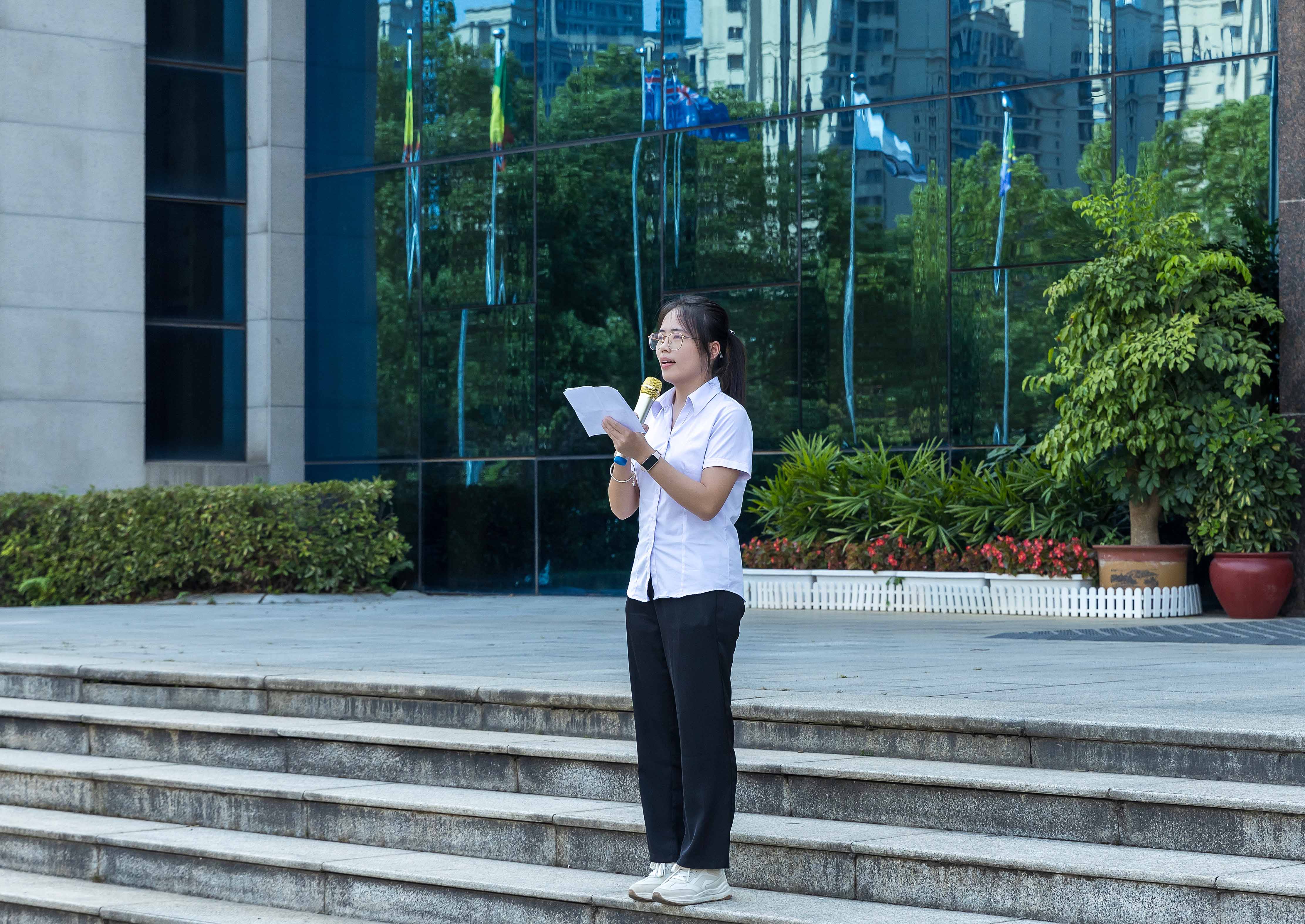 员工代表们整齐列队,注视着五星红旗与公司司旗冉冉升空