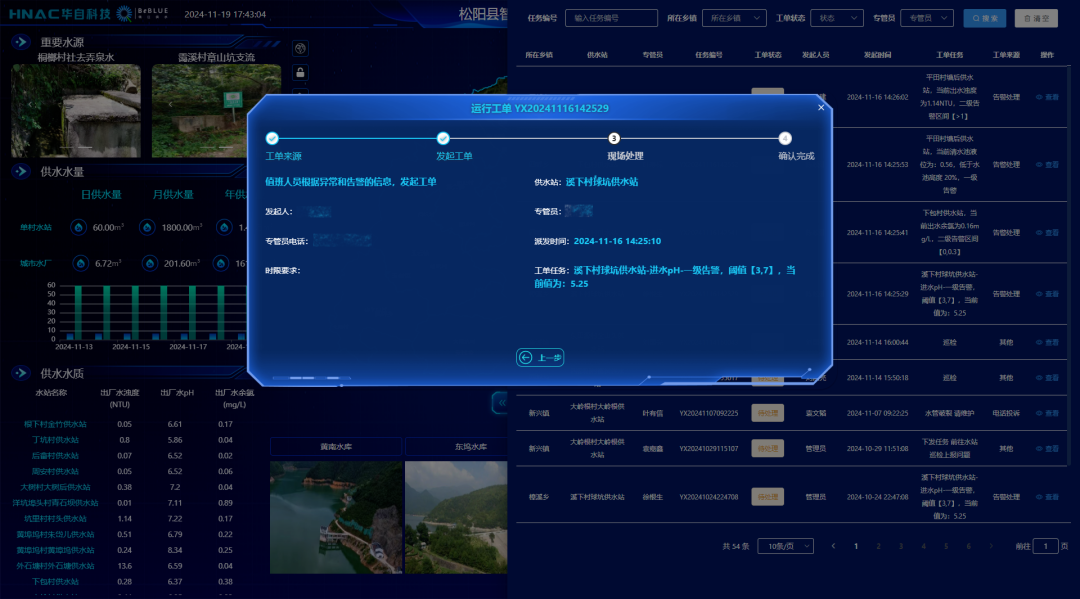 通过水质、水量监测设备的自动报警以及人工上报的问题、报修和投诉,及时发现停水、水质问题及设备故障,并生成工单,通知责任人限时处理,实现了从发现问题到解决问题的全程闭环管理。