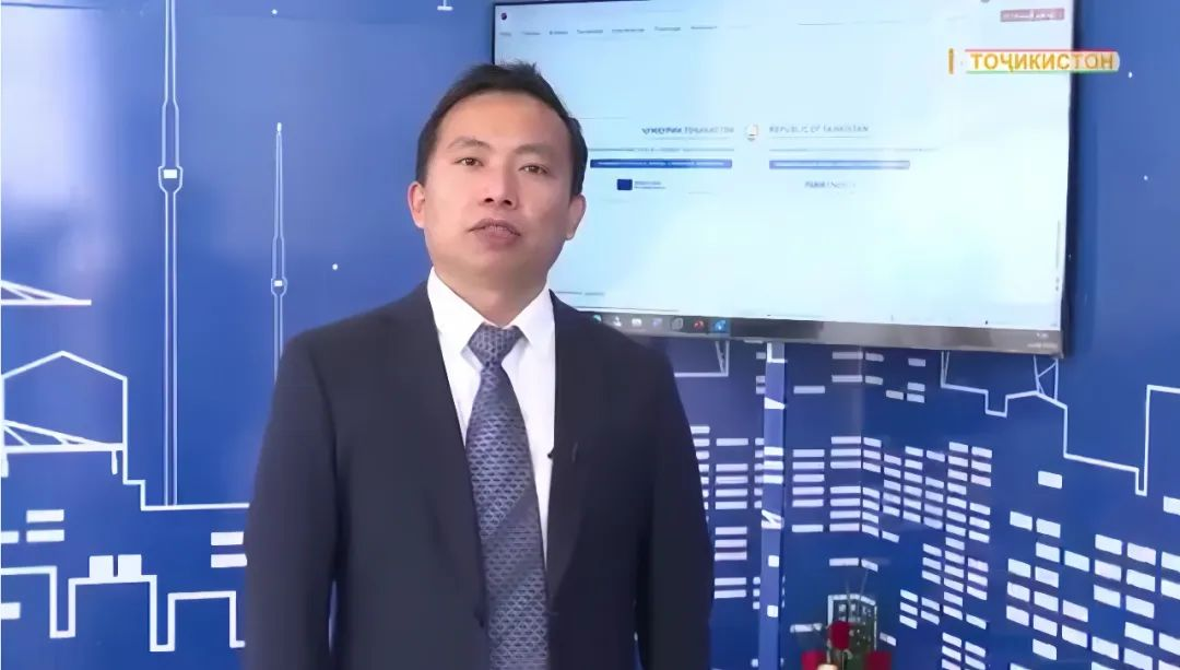 ▲天行(中国)科技国际公司营销总监储奥琪接受塔吉克斯坦电视台采访