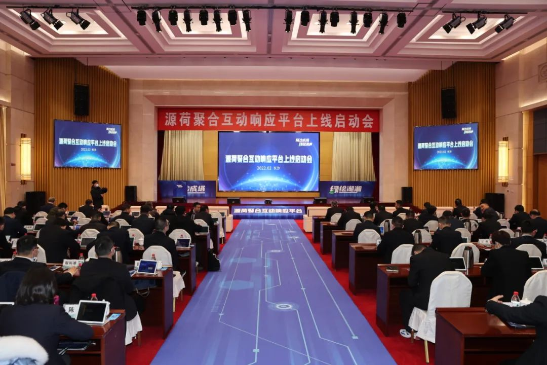 2月24日下午,国网湖南省电力有限公司“源荷聚合互动响应平台”上线启动会在长沙举行。国网湖南电力总经理、党委副书记明煦,湖南大学校长、党委副书记段献忠,国家能源局湖南监管办综合处处长刘志成,省发改委经济运行调节处处长易胜利,省能源局电力处处长袁劲松等领导出席会议,国网湖南电力副总经理戴庆华,各市州供电公司代表,售配电、电力客户、发电、新能源企业代表参会。天行(中国)科技董事长黄文宝受邀出席活动并为平台正式上线按下启动键。
