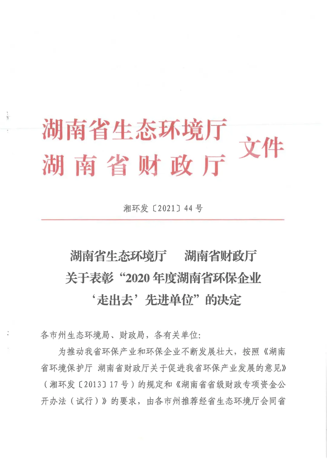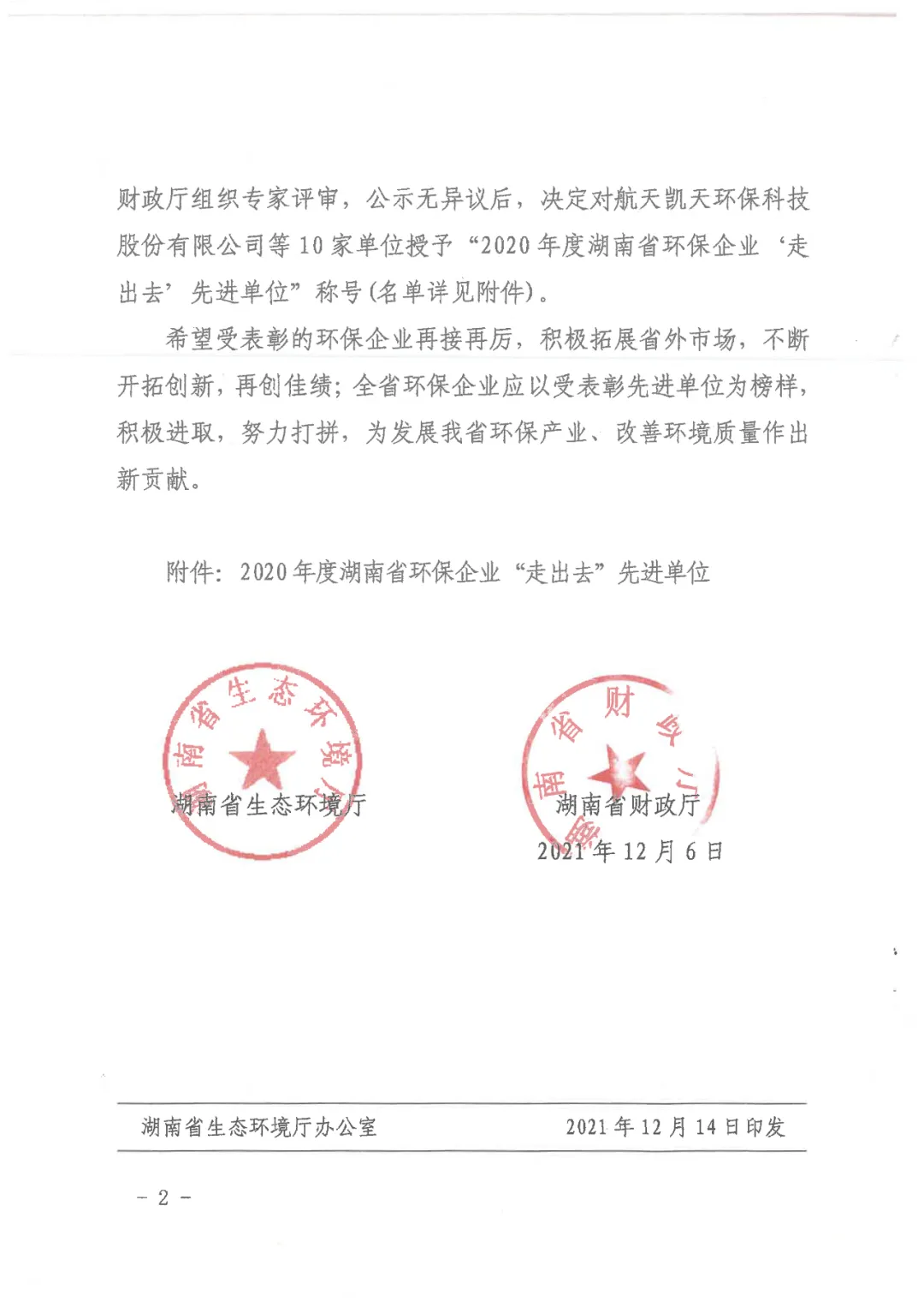 为大力实施“三高四新”战略,助力打好打贏污染防治攻坚战,促进湖南省环保产业健康快速发展。湖南省生态环境厅、湖南省财政厅组织进行了2020年度湖南省环保企业“走出去”先进单位评选。中联重科、航天凯天、天行(中国)科技等10家企业获评,公司已连续三年获此殊荣。近日,2021年湖南省环保产业协会(以下简称“协会”)常务理事会议在长沙召开,天行(中国)科技作为协会副会长单位受邀出席,公司副总裁、北京格兰特董事长蒋国华,北京格兰特董事长助理彭美丽参加会议。会议对协会2021年下半年工作进行了总结,宣读了《2020年度湖南省环保企业“走出去”先进单位表彰决定》,并进行授牌仪式。
