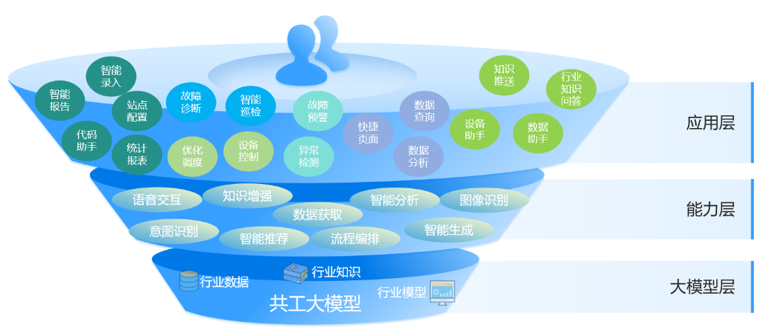 Ø 智融增效:利用大模型作为高效连接器,实现人与系统、设备、知识、数据的完美融合,打造全新交互方式,打破业务鸿沟,由被动服务变为主动服务,由辅助决策升级为主导决策,是生产力的倍增器。